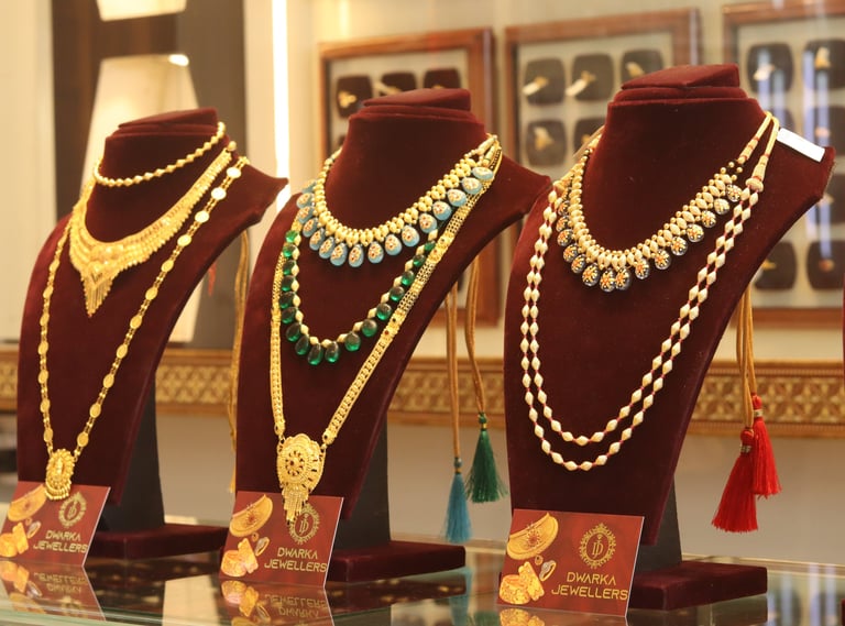 Whether you're celebrating a special occasion or investing in tradition, our wide range of hallmarked gold jewellery, silver ornaments and designer chains ensures something beautiful for everyone. With a commitment to authenticity, customer satisfaction and fair pricing, Dwarka Jewellers has become a cherished name among jewellery lovers in the region.
